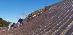 四、全國首例采用3mm銅材壓延成型的九華山旃檀林屋面銅瓦項目一期工程順利收官, 這是銅官府作為國家銅瓦行業(yè)標(biāo)準(zhǔn)起草單位對引領(lǐng)行業(yè)工藝創(chuàng)新做出的新貢獻(xiàn)。