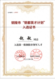 九、趙敏繼曾獲得“安徽省技術(shù)創(chuàng)新領(lǐng)軍人才”稱號后,2020年又入選銅陵市“銅都英才計劃”,被中共銅陵市委、銅陵市人民政府授予首批“銅陵市領(lǐng)軍人才”稱號。